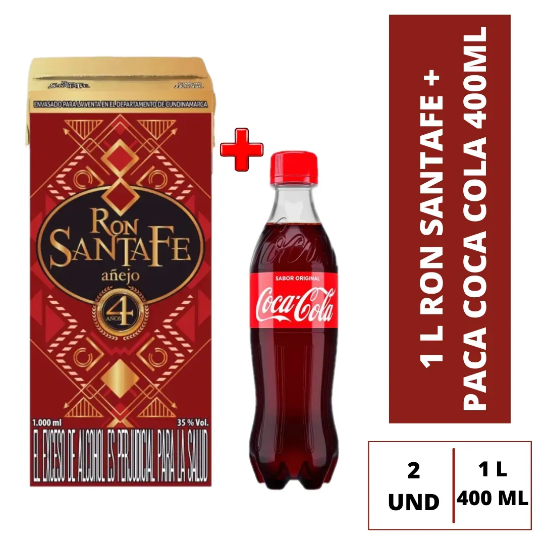 Combo 1L Ron Santafe + 1 Paca Coca Cola 400ml